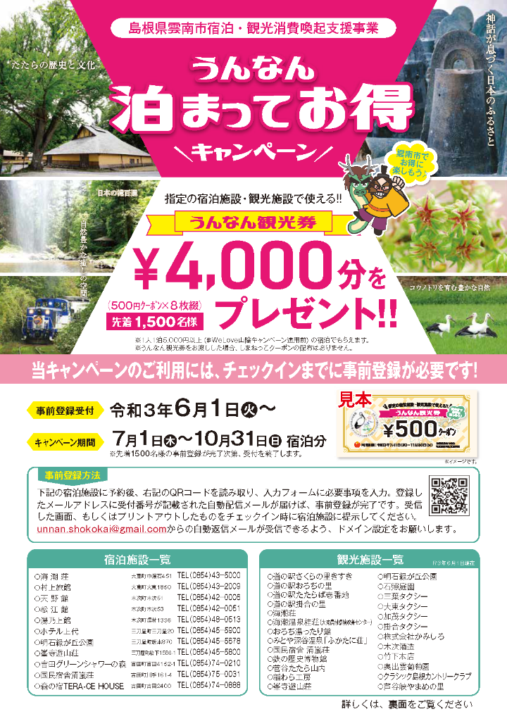 とってもお得なキャンペーンをご利用いただき、ぜひ雲南市へお越しください!