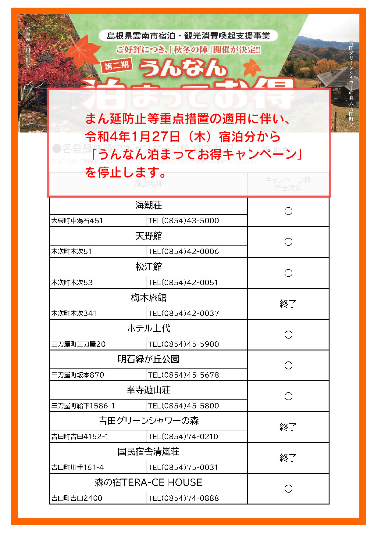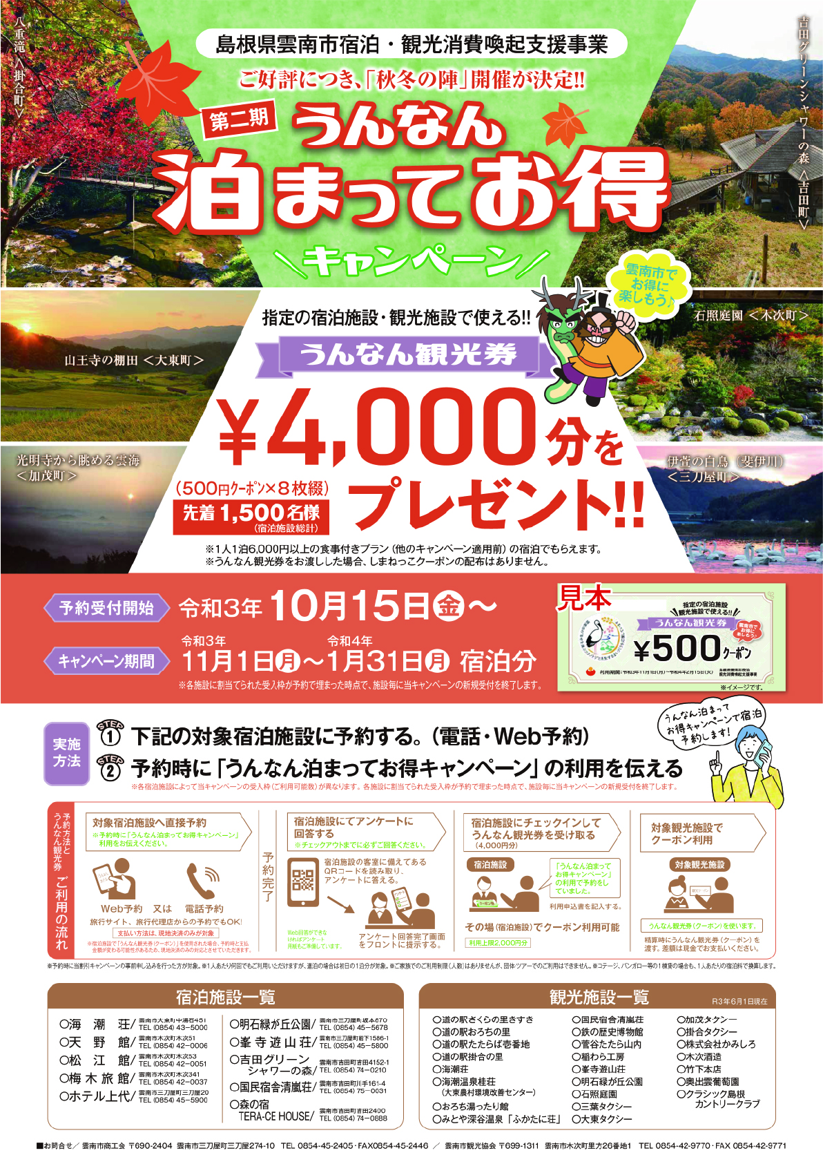 とってもお得なキャンペーンをご利用いただき、ぜひ雲南市へお越しください!