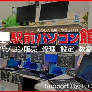(パソコン修理・販売・サポートの駅前パソコン館)株式会社TFCメディアラボ place 島根県雲南市大東町飯田41-12JAビル2F phone 0854-43-9153 安心、安全、快適な再生パソコンを取り扱っております。弊社パソコンのメリットを4つ紹介。(1)★初期設定済み★_(2)★セキュリティ対策済★_(3)★パソコン高速化済み★_(4)★1年間の保証付き★_厳しい点検をクリアし安心を保証。お掃除、除菌をして気持ちよくご利用できるようにしております。ぜひ、気軽にお買い求めください。